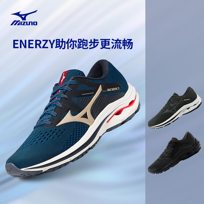 美津浓官方outlets店Mizuno美津浓跑步鞋 男款耐磨透气减震慢跑鞋WAVE INSPIRE17男子稳定支撑慢跑鞋,ENERZY助你跑步更流畅